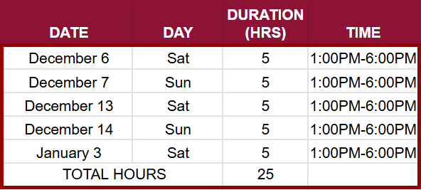 Live Lectures: Dec 6, 2025 – Jan 3, 2026 (1PM-6PM)