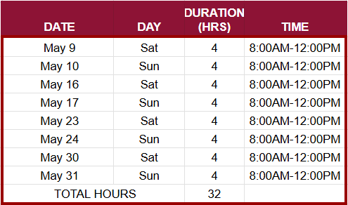 - 4-hour Refresher Course after the final exam